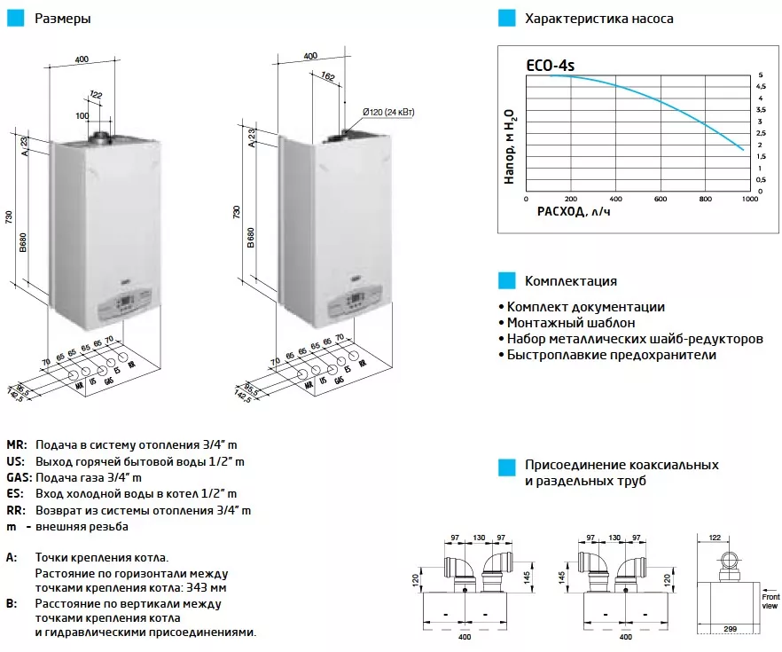Габаритные размеры котла ECO-4s 24F: 0х0х0 мм при весе 30 кг